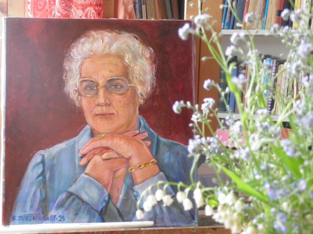 Maalasin äidistäni 1970-luvun lopussa kaksi muotokuvaa. Toinen on suuri, lähes luonnollista kokoa oleva kokovartalokuva ja toinen pienikokoinen ylävartalokuva. Suuri maalaus on teknisesti hyvin tehty, mutta täysin hengetön. Äiti istuu siinä vakavana kädet sylissä kauniissa brokadikuvioidussa sinivoittoisessa takkipuvussaan. Pieni kuvakin oli hengetön siihen asti, kunnes jotain tapahtui tekijässä ja alkoi tapahtua muotokuvassakin.