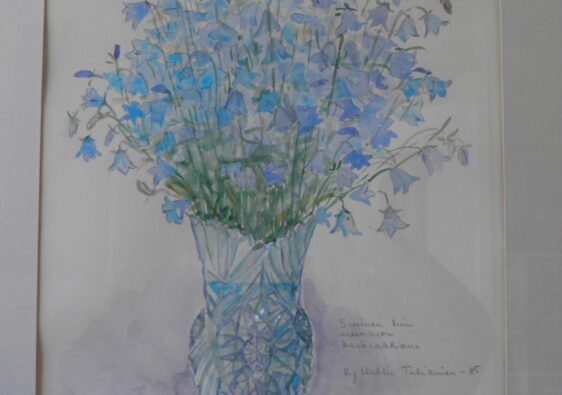 Artikkelikuvana oma malaus ”Ruissalon tammet” . v 1980.